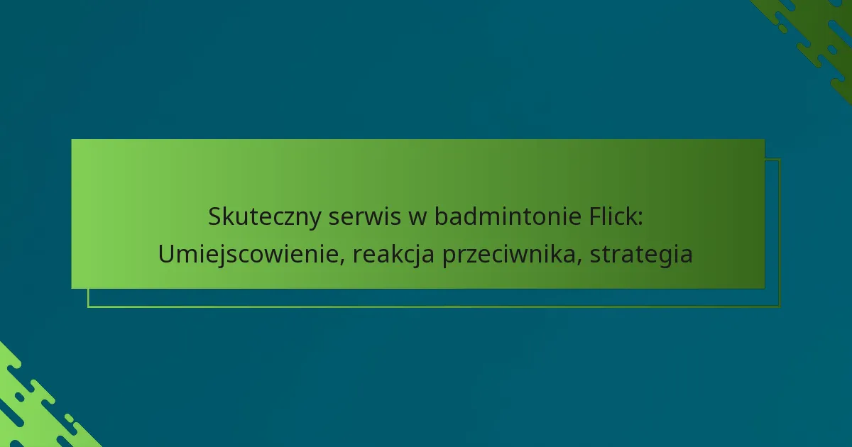 Serwis flick to charakterystyczna technika, która oferuje unikalne zalety w porównaniu do tradycyjnych metod serwisowych, takich jak serwis z góry czy z dołu. Łączy szybkość i zwodzenie, co utrudnia przeciwnikom przewidzenie trajektorii i umiejscowienia lotki.